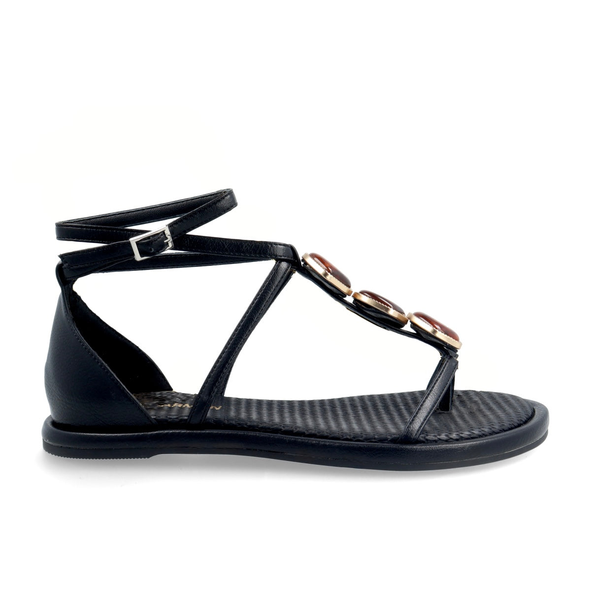 Earthy, radiant, and effortlessly chic—Alma in brown leather blends natural elegance with eye-catching detail. Crafted from textured brown leather, this sandal features delicate straps and a secure ankle buckle for a flattering fit. The centerpiece? A row of oversized amber-toned stones that shimmer with every step. Whether you're heading to a summer getaway or a garden party, Alma brings grounded glamour to your look.