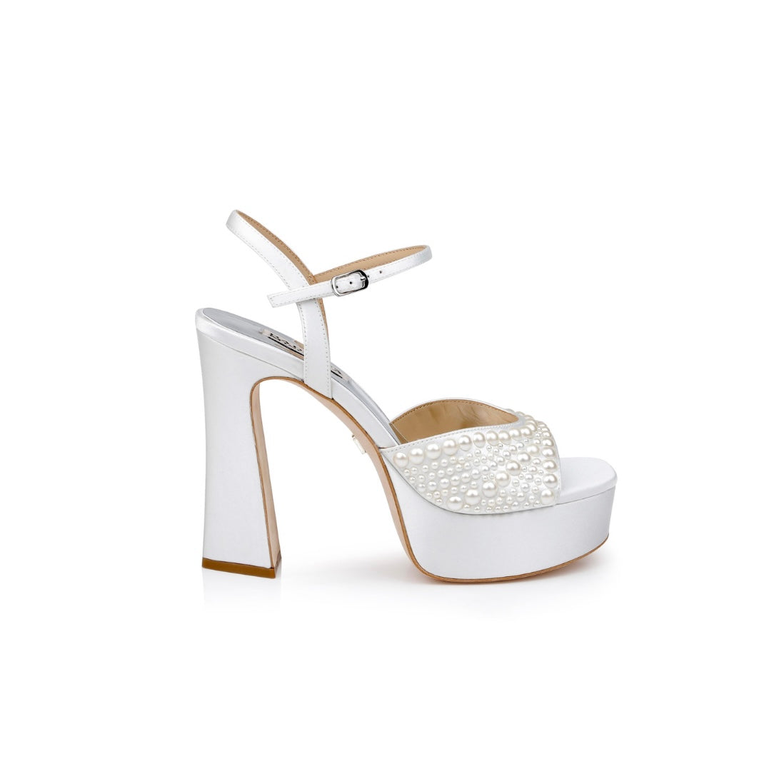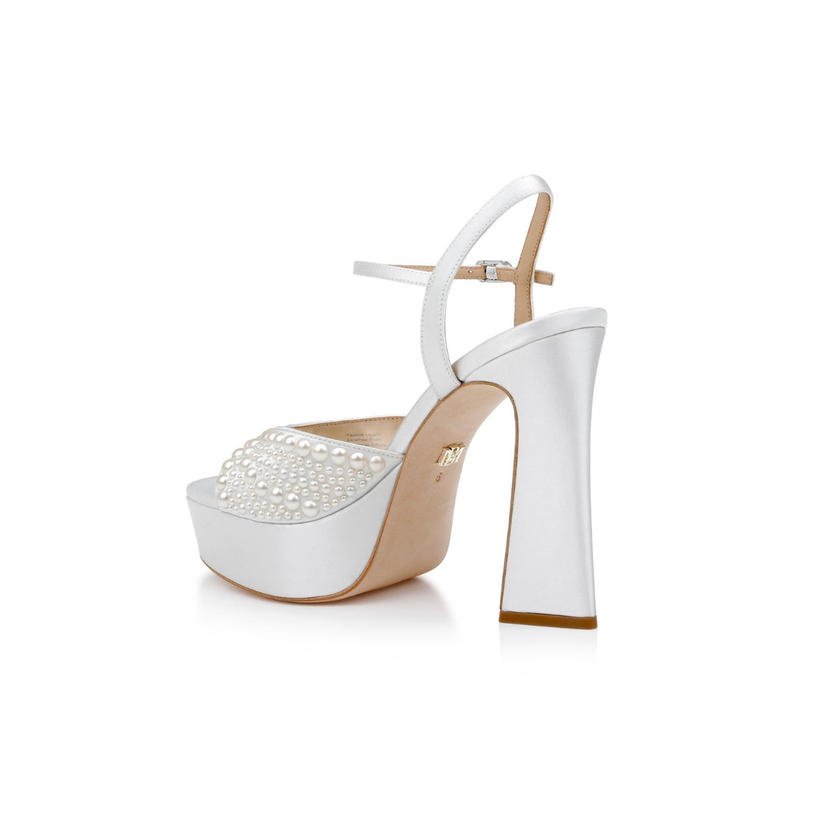 Radiate elegance in the Bryleigh Platform in white satin — a dazzling choice for bridal moments, parties, or any time you want to glow. The sparkling vamp strap steals the spotlight, while the block heel and platform give you the lift you love without sacrificing comfort. Feminine, bold, and made to turn heads.