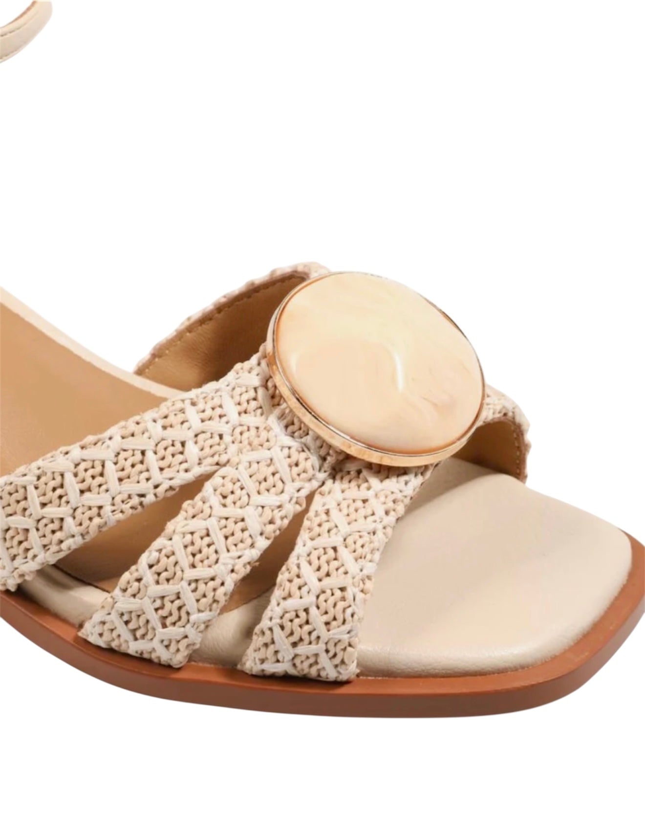 Blending contemporary design with timeless appeal, these heeled sandals feature a 6 cm lift for added height without sacrificing comfort. A smooth leather interior offers a soft, luxe feel, while the sleek synthetic exterior ensures durability with a modern edge. The vamp is adorned with refined stone detailing, bringing a touch of glamour to every step. Designed with ankle support and a secure metal buckle closure, they offer both confidence and style. Perfect for any occasion, these sandals effortlessly balance sophistication and wearability.