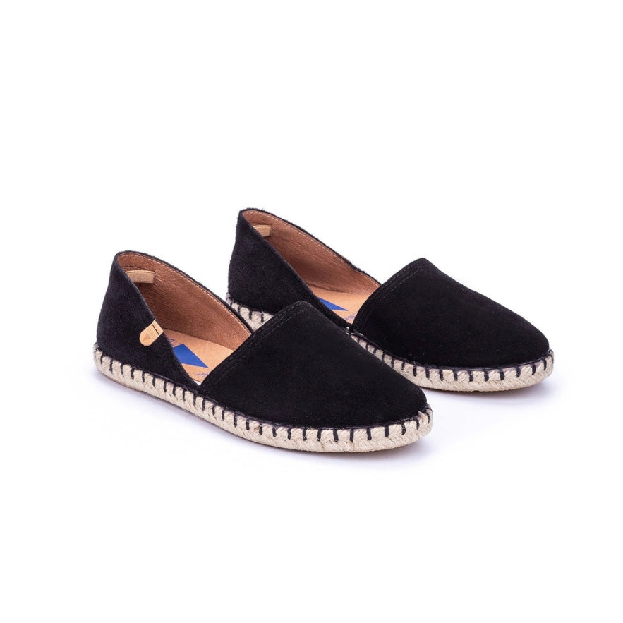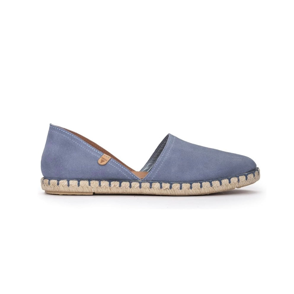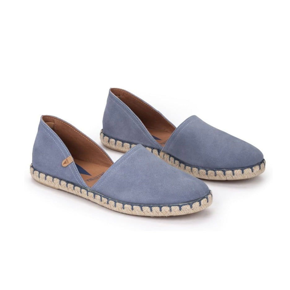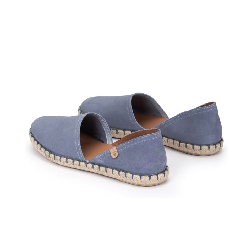 Slip into summer with these flat espadrilles in rich blue suede. Made in Spain with a leather-lined interior and jute and rubber sole, they blend comfort and craftsmanship in every detail. With a design rooted in tradition but styled for today, the Carmen model transitions seamlessly from coastal escapes to urban adventures — a staple for every warm-weather wardrobe.