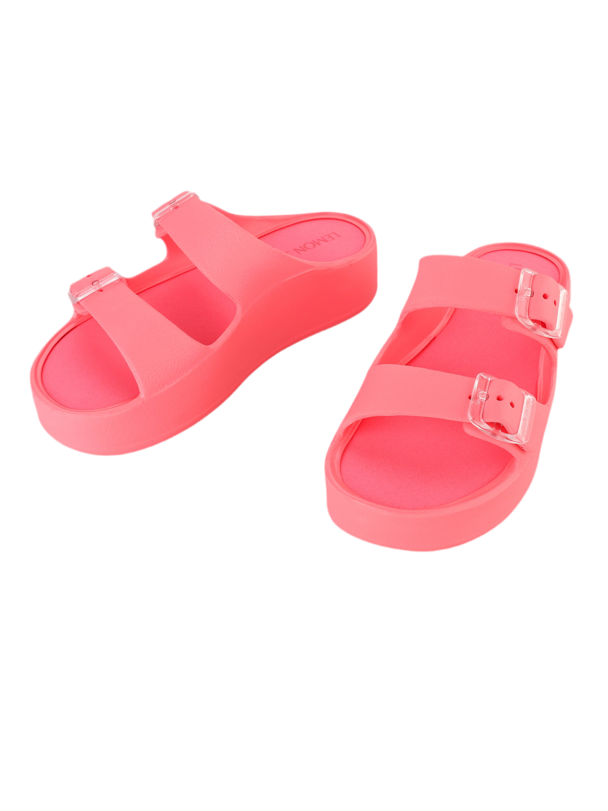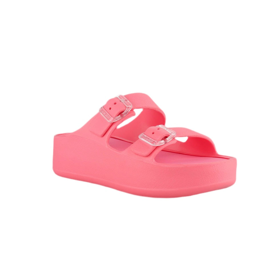 Step up your summer style with Phenix in Flamingo Pink — bold, playful platform sandals with adjustable buckles and effortless charm. Comfy, practical, and full of personality, they’re made to go wherever the day (or night) takes you, from beach strolls to rooftop laughs with friends. Crafted in Portugal using high-quality, sustainable materials and powered by clean energy, these vegan sandals are as kind to the planet as they are to your feet