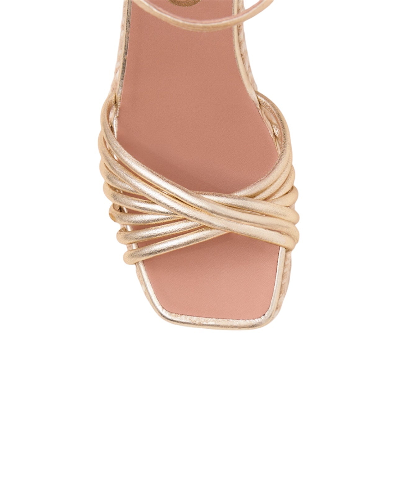 Luminous and breezy, Fusca in gold metallic leather is a radiant summer essential. With slender interwoven straps, a softly cushioned insole, and a hand-braided ecological jute heel, it’s handcrafted in Spain to add shimmer and height in equal measure. A versatile standout for daytime elegance or evening ease.
