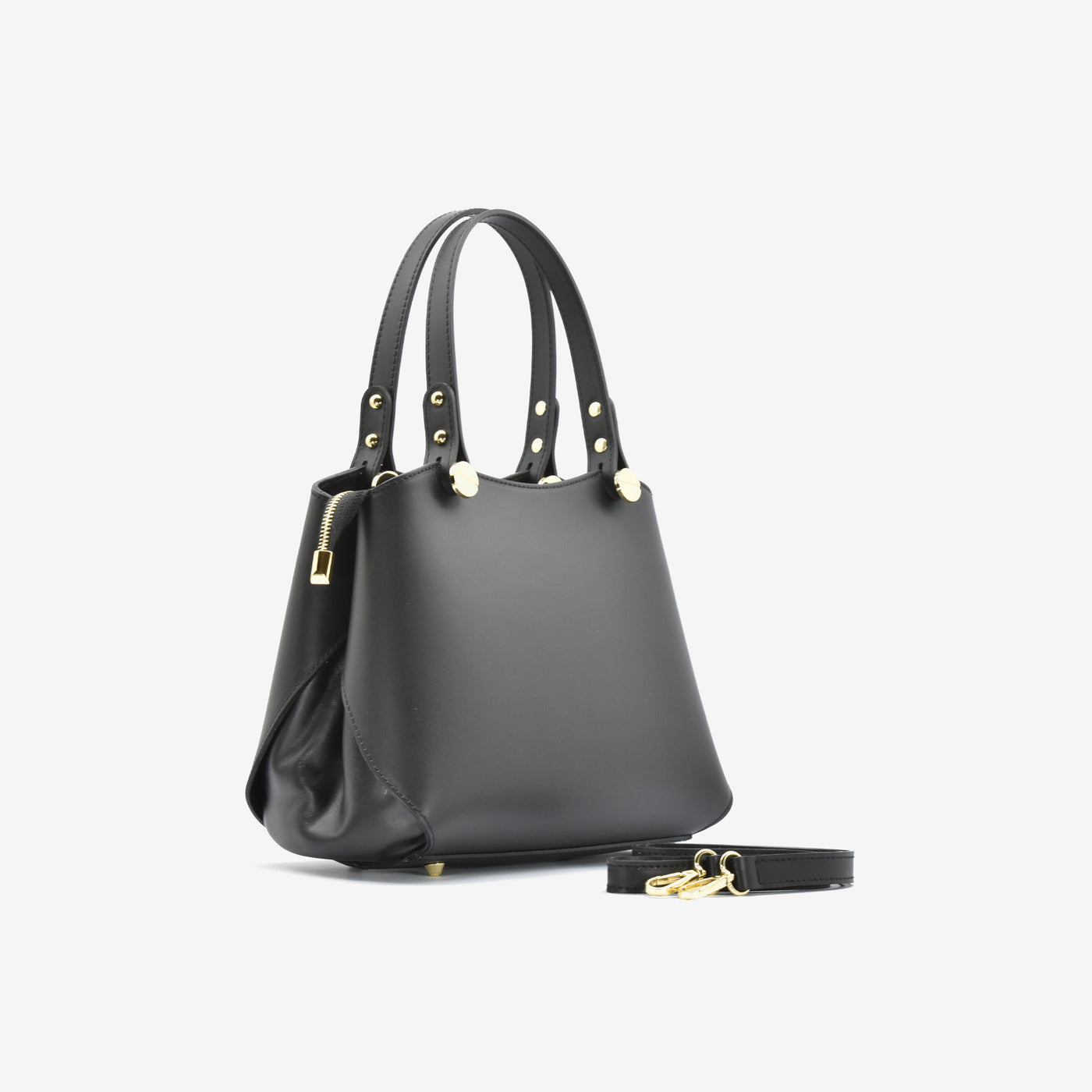 Discover the Léana bag – a luxurious accessory made from premium genuine cowhide and adorned with sophisticated gold metal accents. Designed for versatility, it can be effortlessly carried by hand or worn on the shoulder with its elegant tone-on-tone leather strap. A truly unique piece, the Léana bag adds a refined touch of elegance to any collection