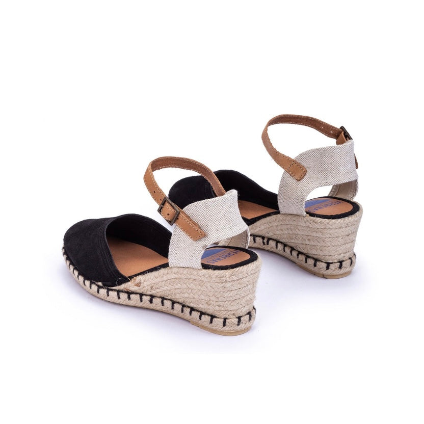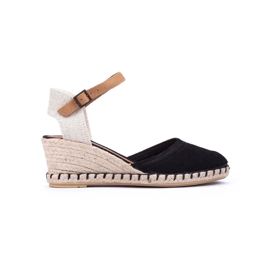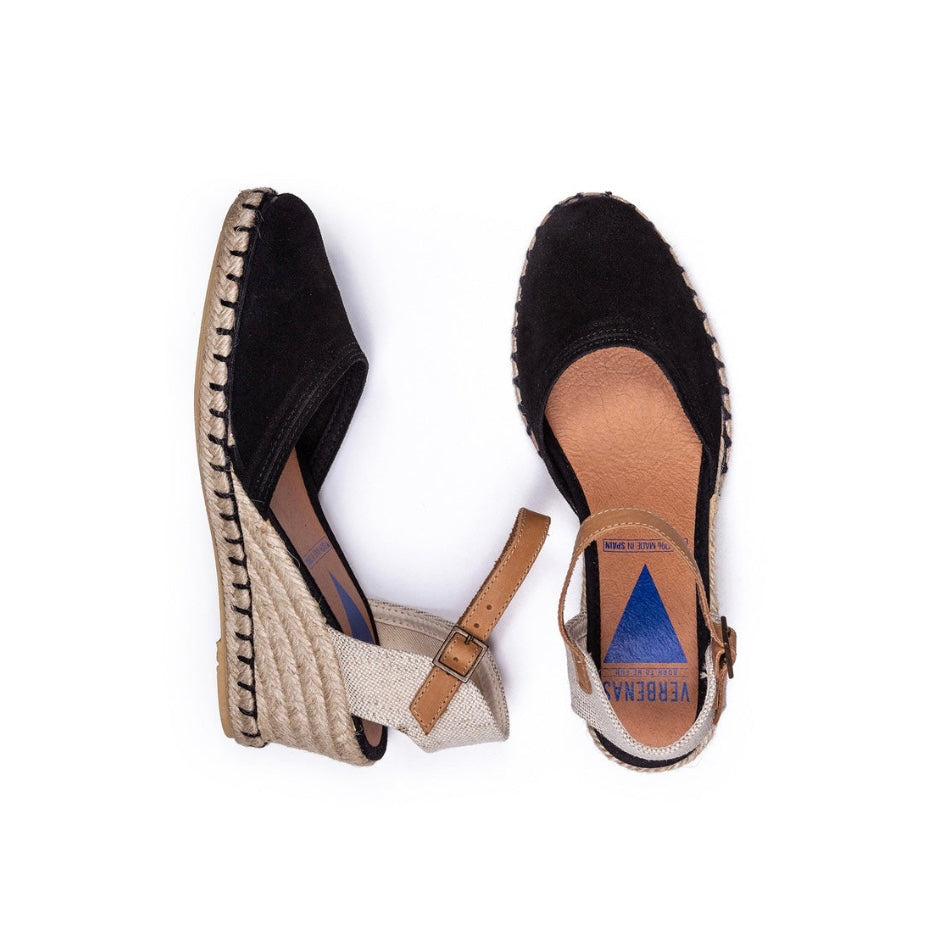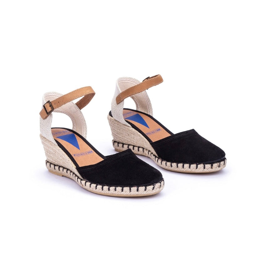 Step into timeless summer style with the Malena Black Suede Wedges. Crafted in Spain from premium black suede, these espadrilles feature a comfortable leather lining and insole, set on a 5.5 cm jute and rubber wedge for a natural, grounded feel. Malena is a perfect blend of tradition and modern flair. With every step, it evokes the spirit of warm coastal evenings and the craftsmanship of Spanish artisans.