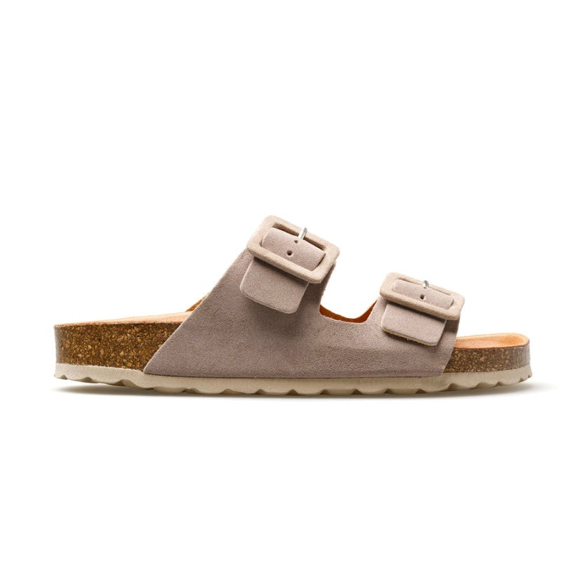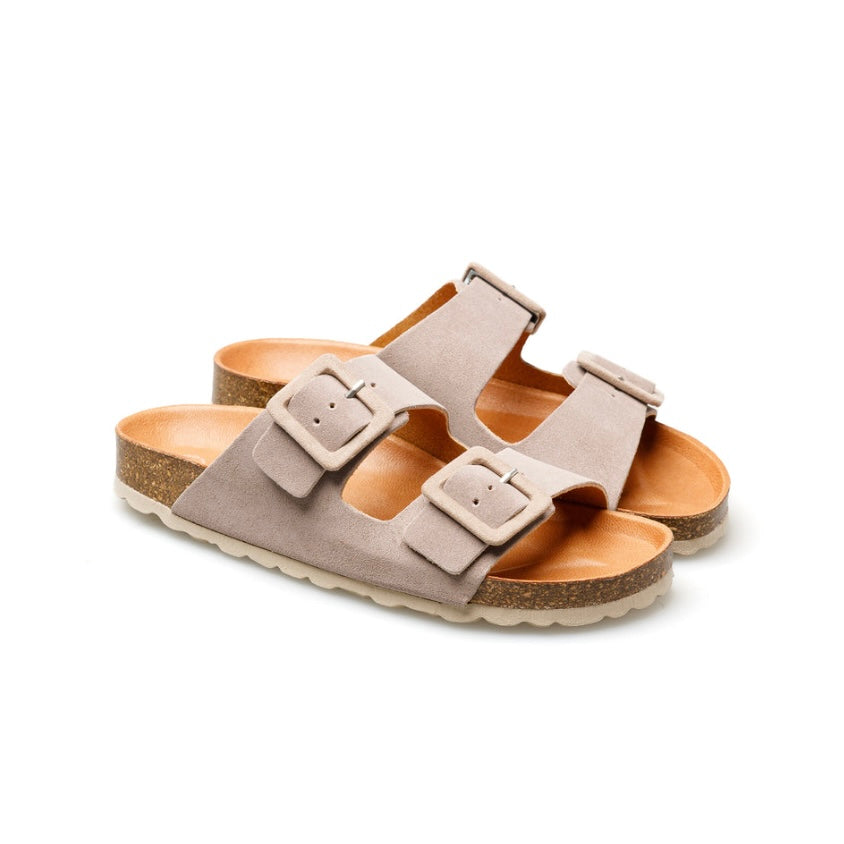 Crafted in Spain from soft stone-colored split suede, the Randel sandals combine traditional craftsmanship with modern design. Featuring a leather lining and insole, along with a cork and rubber sole, they offer both comfort and style. The matching suede-covered buckles create a sleek, cohesive look, making Randel the perfect choice for those who appreciate elegance with a contemporary edge.