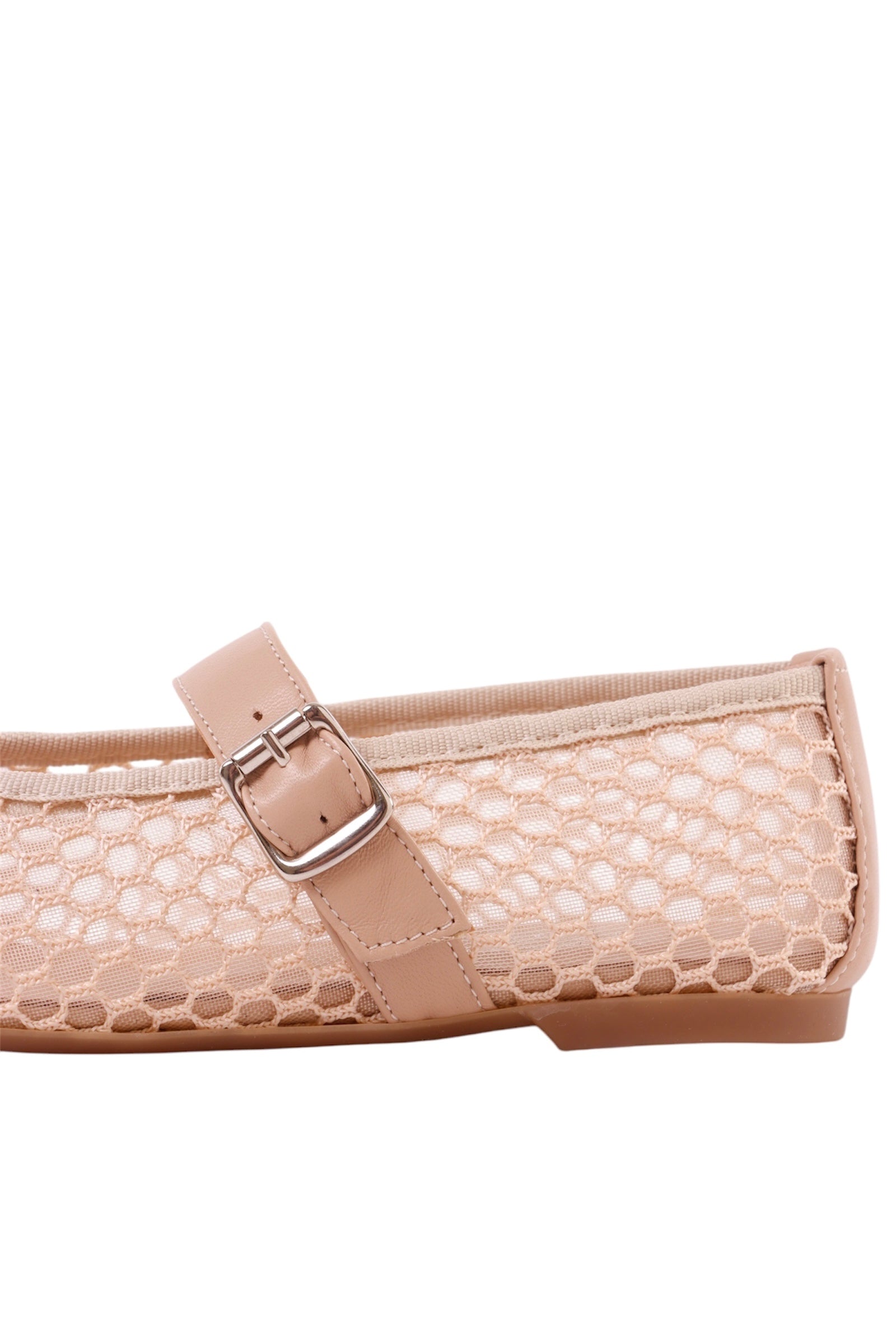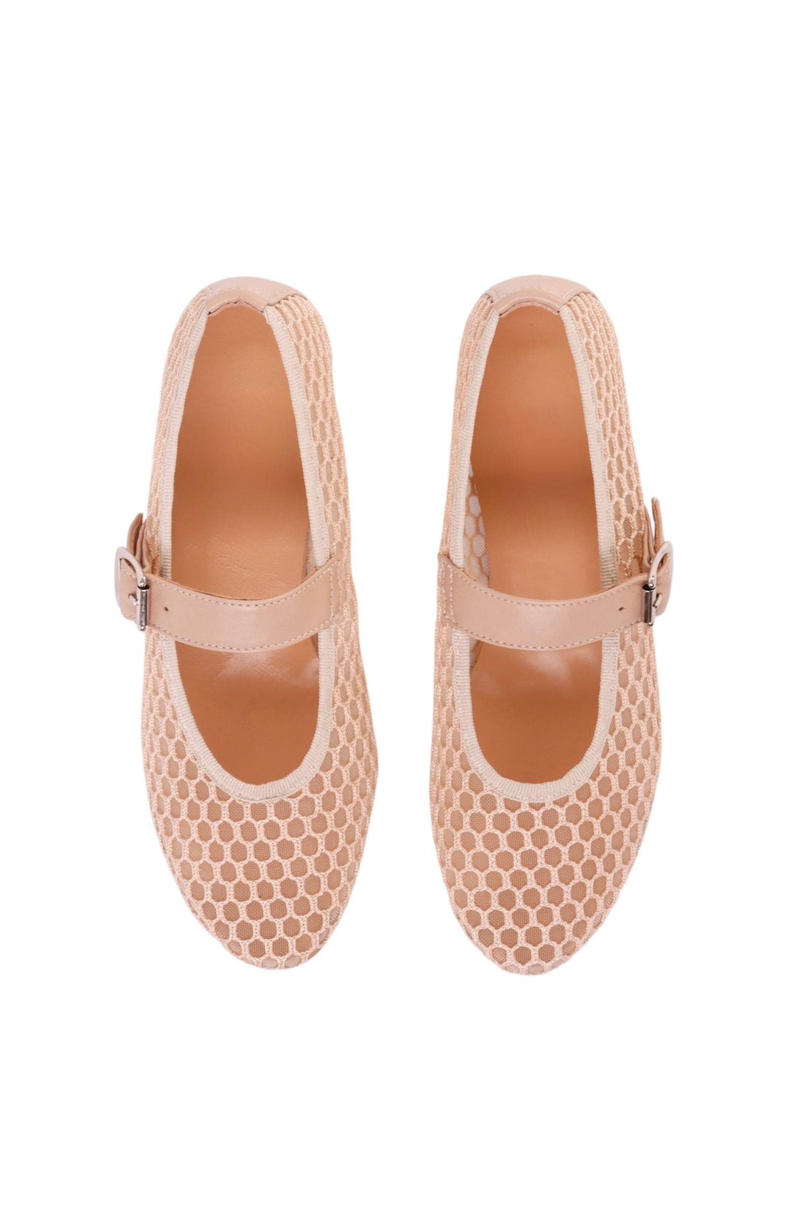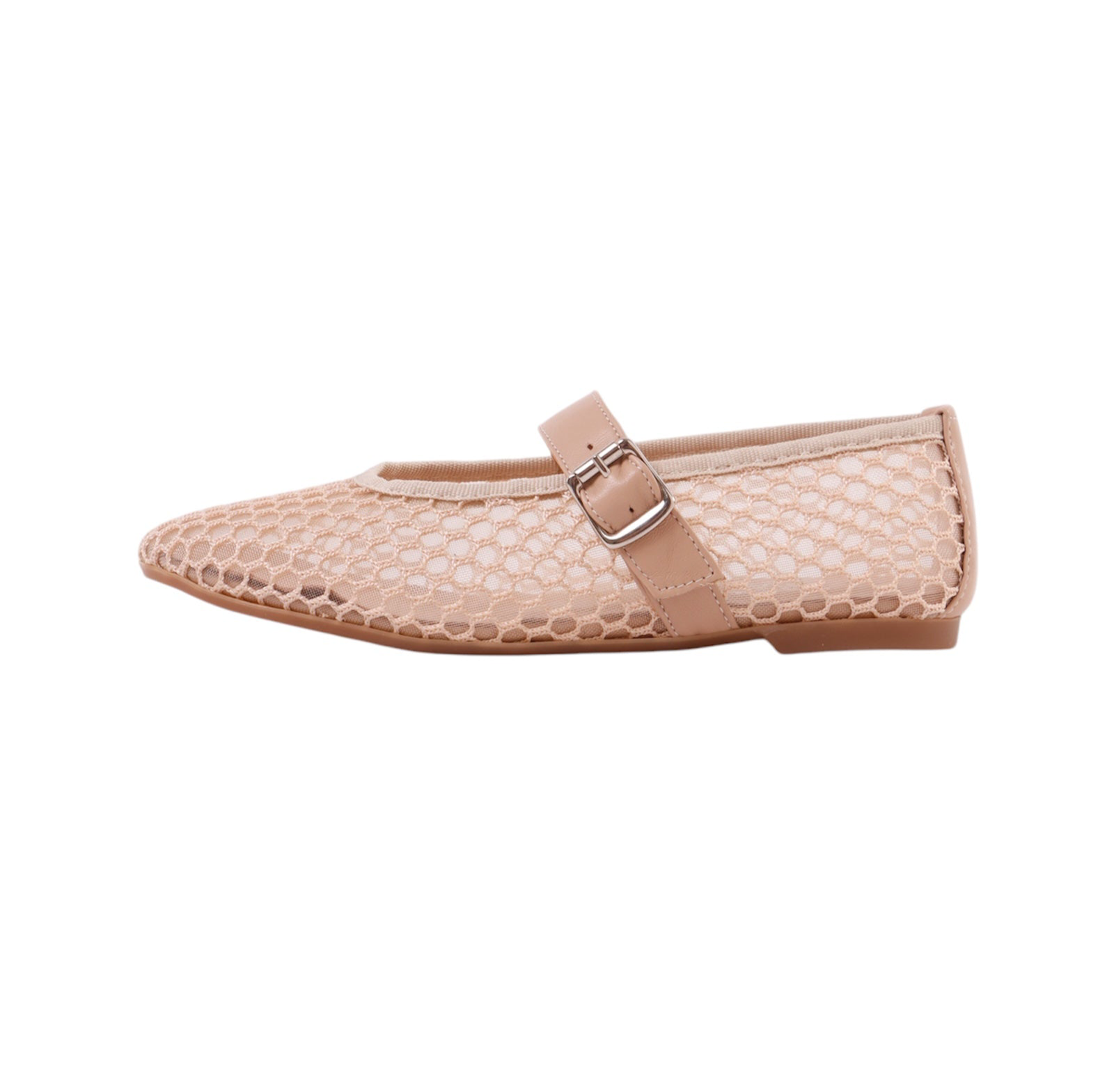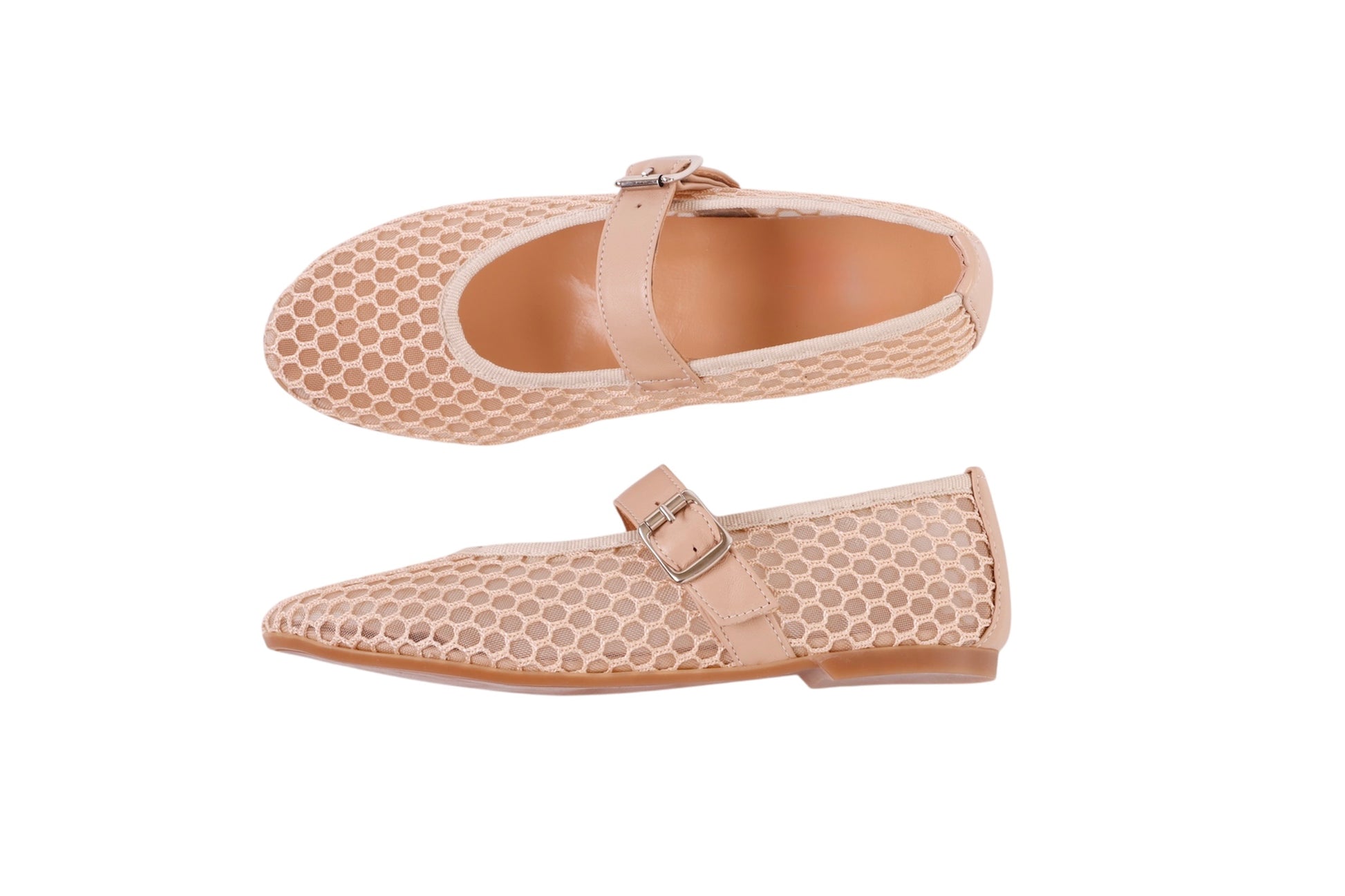 Lightweight, breathable, and effortlessly refined—our beige mesh Mary Jane flats reimagine a timeless silhouette with a modern, airy twist. Handcrafted in Italy, they feature a delicate honeycomb knit that contours the foot while offering exceptional comfort. The smooth leather strap with a polished buckle ensures a secure fit, and the soft neutral hue makes them a versatile staple for warm-weather dressing. Finished with a subtle 1 cm heel, these flats bring elegance to everyday ease.